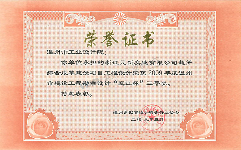 浙江元新實業(yè)有限公司超纖維合成革建設(shè)項目工程設(shè)計 甌江杯三等獎