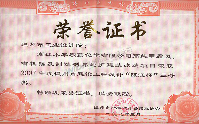 浙江禾本農(nóng)藥化學(xué)有限公司高純甲霜靈、有機錫及制劑異地擴建技改項目 甌江杯三等獎